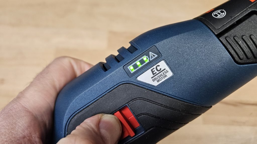 La GKF 12V-8 fonctionne avec les batteries Bosch 12V, compatibles avec la gamme 10,8V précédente. Ce système est idéal pour ceux qui possèdent déjà des outils Bosch Pro 12V. Une batterie de 2,0 Ah offre une autonomie correcte pour les petits travaux d’appoint. Pour plus d’endurance, on peut monter jusqu’à 3,0 ou 4,0 Ah.