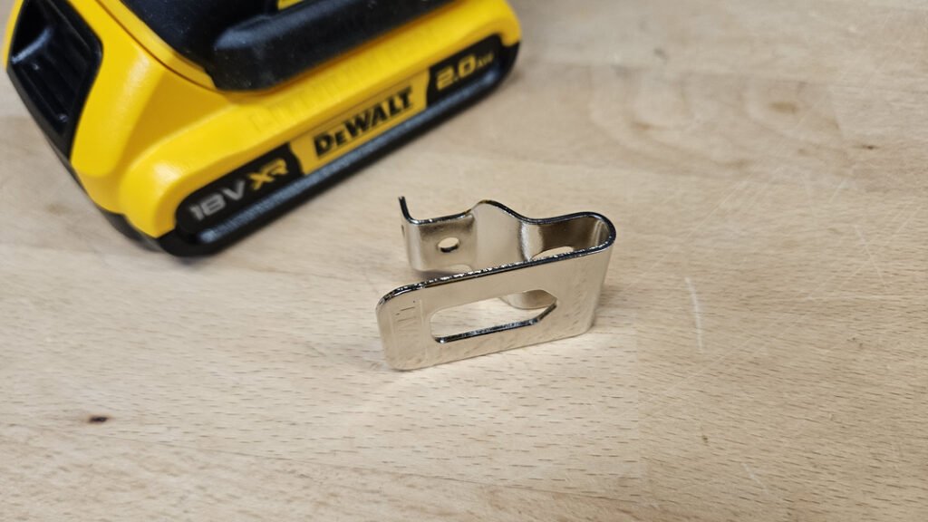 La référence DCF922N XJ est généralement proposée en version nue, sans batterie ni chargeur, mais vous trouverez avec la machine un clip ceinture que l’on pourra fixer aussi bien à droite qu’à gauche de la boulonneuse.