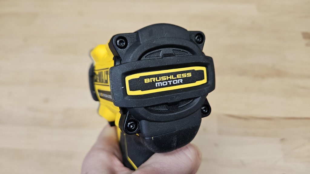 La motorisation Brushless de dernière génération est l’un des points forts de cette DCF922N. Outre les bénéfices attendus en rendement et en durabilité, elle permet surtout de proposer des performances élevées dans un format très court. Côté performances, on dispose d’un couple de serrage annoncé à 406 Nm, et d’un couple de desserrage qui peut monter jusqu’à 610 Nm, ce qui place l’outil dans une catégorie nettement plus ambitieuse que les modèles “entrée/milieu de gamme”. La cadence de frappe atteint quant à elle les 3550 coups par minute, un niveau supérieur à la moyenne des boulonneuses classiques généralement situées autour des 3000 cps/min, ce qui se traduit par une percussion plus présente lorsque l’outil rencontre une forte résistance.