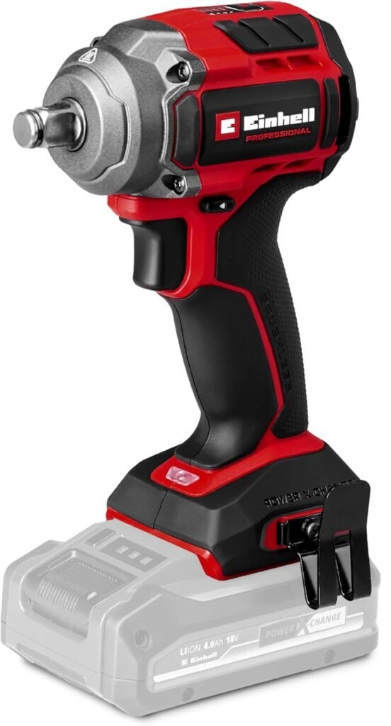 Comme tous les outils de la plateforme Power X-Change, cette boulonneuse fonctionne avec les batteries 18V Einhell que l’on retrouve sur une grande partie de la gamme électroportative et jardin de la marque. Si vous êtes déjà équipé, c’est un vrai plus puisque vous pouvez simplement acheter la machine nue et utiliser vos accus existants. Dans le cas contraire, il faudra prévoir l’achat d’un pack batterie + chargeur, ce qui alourdit un peu la facture au départ mais reste intéressant si vous comptez compléter votre parc d’outils par la suite.