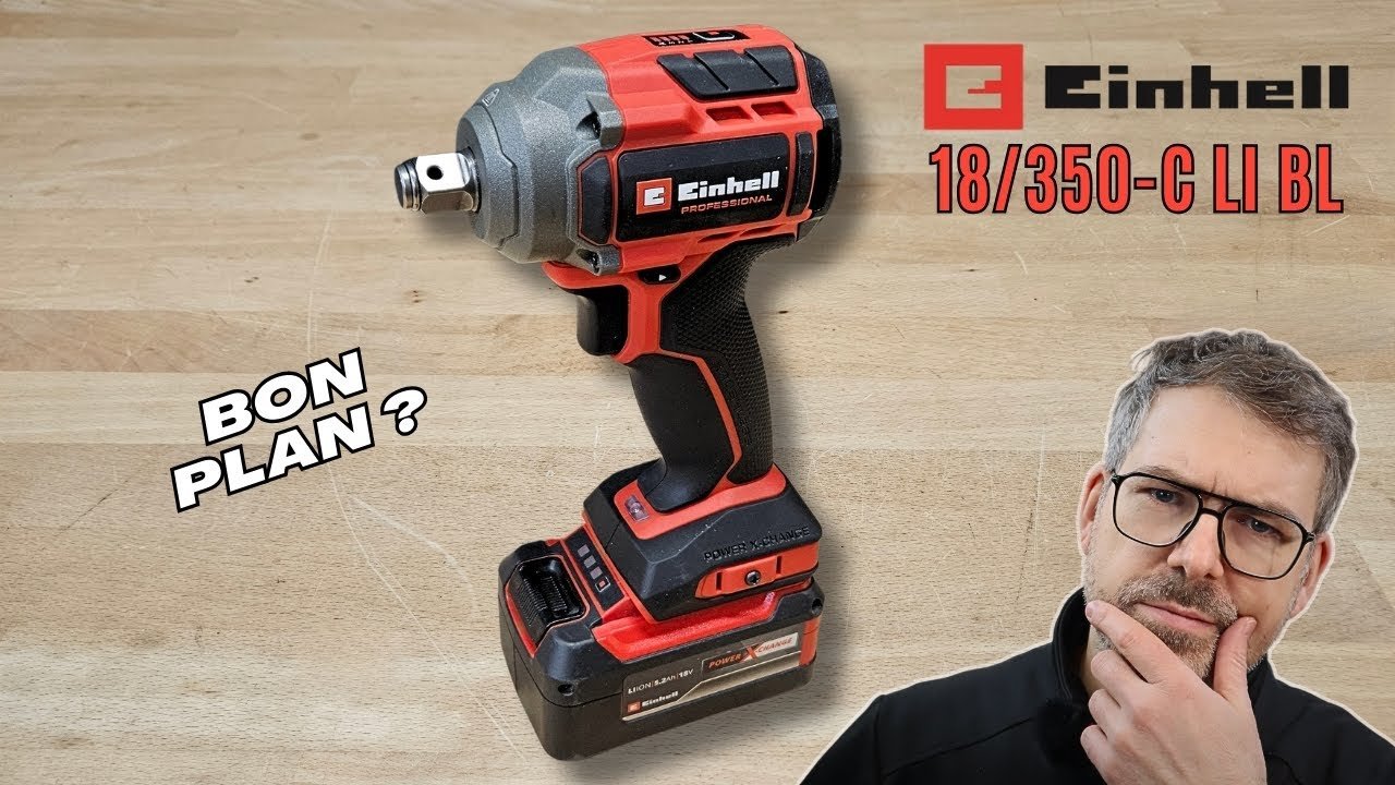 Ma vidéo de présentation vous permet de voir la boulonneuse Einhell TP-CW 18/350 Li BL en conditions réelles, notamment lors du vissage d’un gros tirefond dans une pièce de bois dense. On y voit le comportement de la machine à pleine puissance, la réactivité du moteur Brushless, ainsi que le fonctionnement du mode automatique en dévissage.