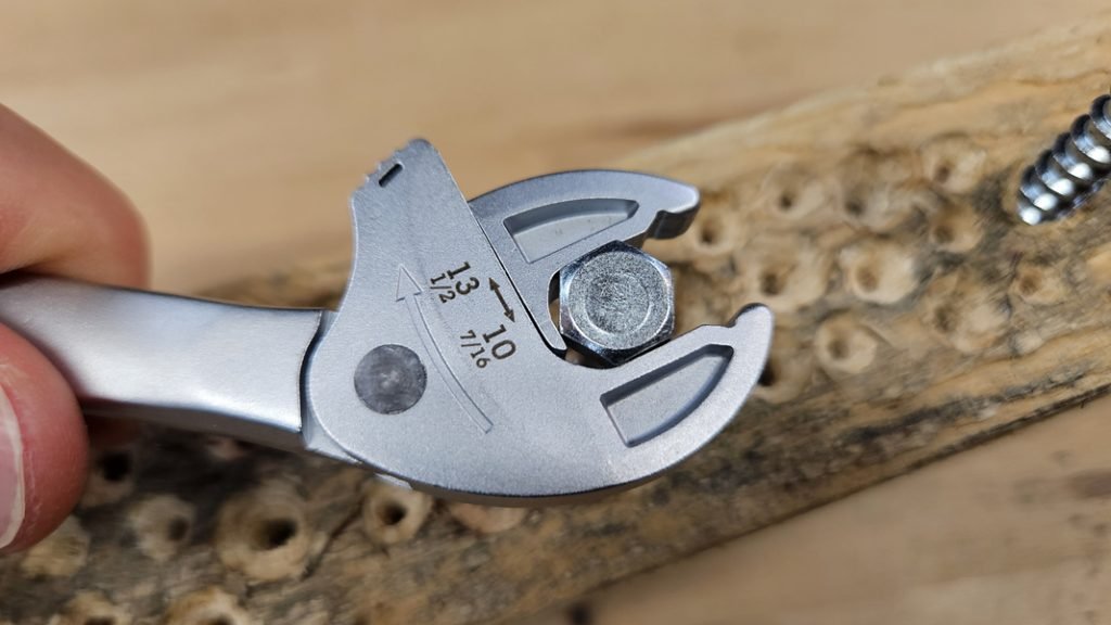 Autre atout majeur, la fonction cliquet intégrée. En tournant légèrement la clé autour de l’écrou, la mâchoire reprend automatiquement sa position initiale, ce qui permet de visser ou dévisser sans retirer l’outil. Ce mécanisme améliore la rapidité du travail et évite d’endommager les arêtes des écrous ou des têtes de vis.