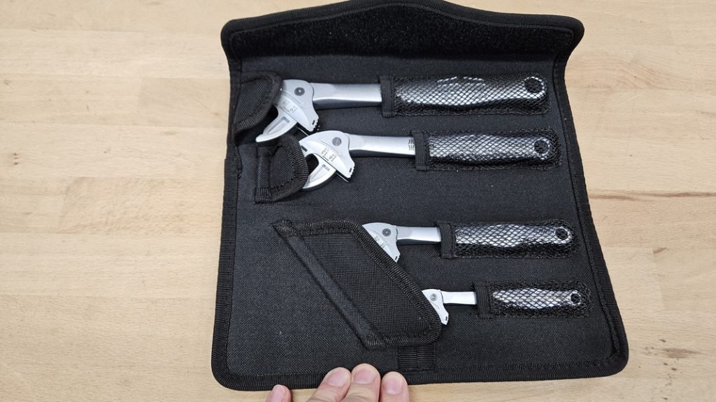 Le cœur de l’innovation Wera réside dans la fourche auto-ajustable. Il suffit de poser la clé sur l’écrou ou le boulon, puis d’appuyer pour que la mâchoire s’adapte automatiquement à la dimension, couvrant une large plage de diamètres. Une seule clé peut ainsi remplacer plusieurs clés plates, clés anglaises et même clés à cliquet.