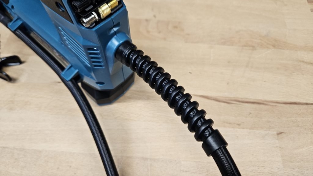 Le flexible mesure 65 cm, une longueur suffisante pour atteindre facilement les valves. Le renfort au niveau de l’embout, est une bonne idée, puisqu’il permet de prolonger sa durée de vie.