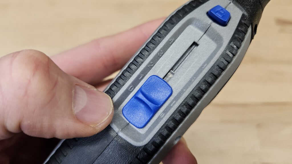 Comme je le mentionnais plus haut, le Dremel Lite dispose d’un variateur de vitesse à plusieurs positions, allant de 8000 à 25 000 tr/min. Ce réglage permet d’adapter la rotation à l’accessoire utilisé. Une vitesse modérée est intéressante pour les opérations de nettoyage ou de finition, afin de garder le contrôle et de limiter l’échauffement. À l’inverse, une vitesse plus élevée facilite certaines découpes légères et améliore l’efficacité sur des accessoires abrasifs.