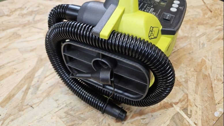 Ce compresseur peut atteindre jusqu’à 10,3 bars, une performance suffisante pour gonfler sans effort des pneus de voiture ou de vélo. Il est également très à l’aise avec les objets volumineux, grâce à un débit d’environ 210 litres par minute en mode gonflage. Cela lui permet de remplir un matelas deux places en moins de deux minutes. Certes, il existe des modèles spécialisés encore plus rapides, mais le R18I compense par sa polyvalence et sa facilité d’utilisation.