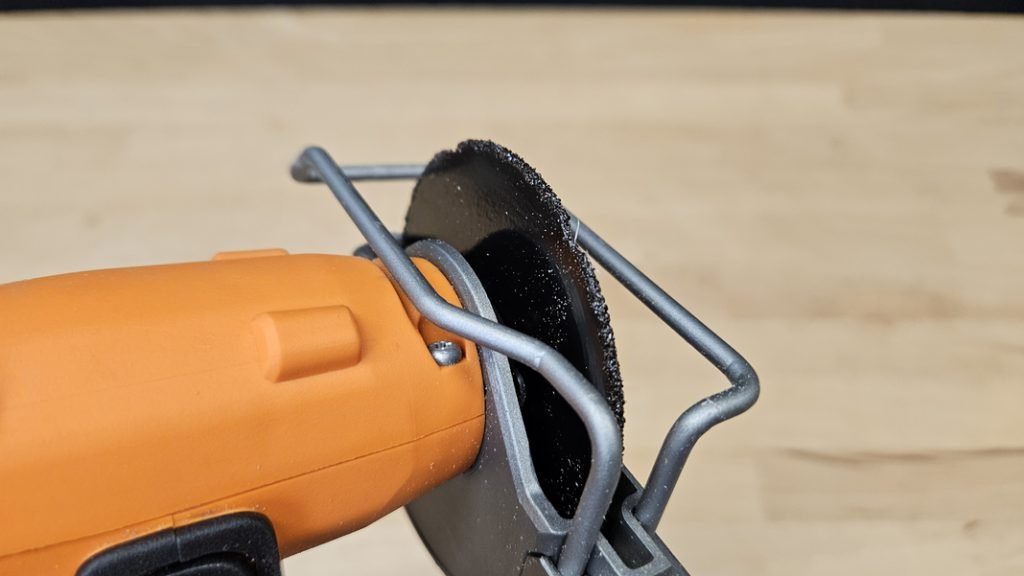 Le changement de disque s’effectue facilement grâce à un système classique, simple et rapide. De plus, le guide de profondeur réglable permet d’ajuster précisément la profondeur de coupe souhaitée, facilitant ainsi les travaux nécessitant une grande précision.