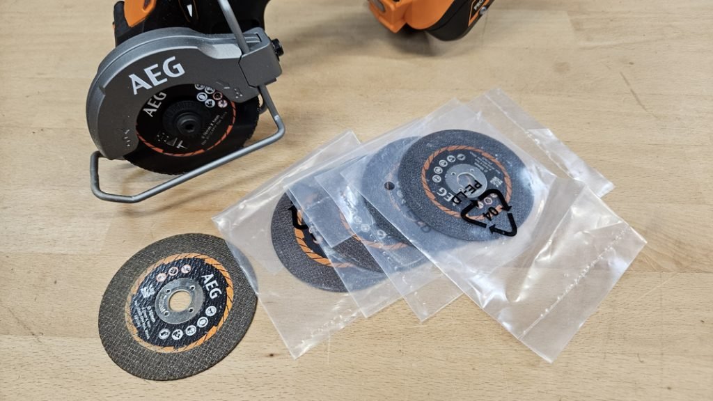 La mini meuleuse AEG BMMS 18SBL est généralement fournie avec plusieurs disques, permettant de commencer immédiatement les travaux. La disponibilité des disques de remplacement est facilitée grâce à leur format standard très répandu.