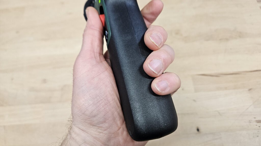 La particularité majeure de ce modèle est son alimentation, en effet la batterie est intégrée au corps de la machine et fonctionne en 7,2 V. Ce choix a un impact direct sur l’équilibre et la maniabilité, puisqu’il n’y a ni batterie 12V/18V à clipser, ni surépaisseur à l’arrière. En contrepartie, l’autonomie sera donc limitée à des séquences courtes, ce qui correspond à la logique d’usage. La recharge se fait via USB-C, avec le câble fourni, cette solution est parfaite pour un usage en mobilité, car l’outil peut être rechargé avec un chargeur de téléphone, une batterie externe ou un port USB d’ordinateur.