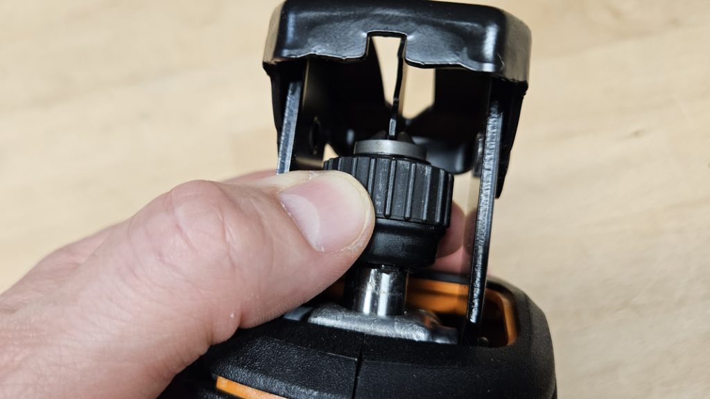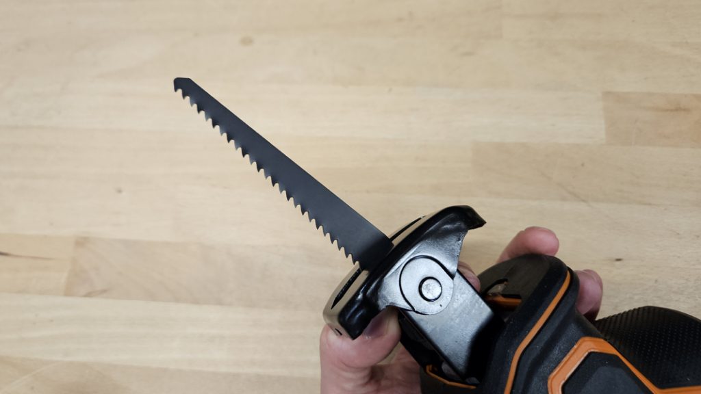 Le changement de lame sur la mini scie sabre AEG BUS18SBL se fait aisément grâce à un mécanisme classique par bague à rotation d’un quart de tour. Ce système permet un remplacement rapide des lames sans aucun outil additionnel, facilitant ainsi les changements fréquents de matériaux ou de type de coupe.