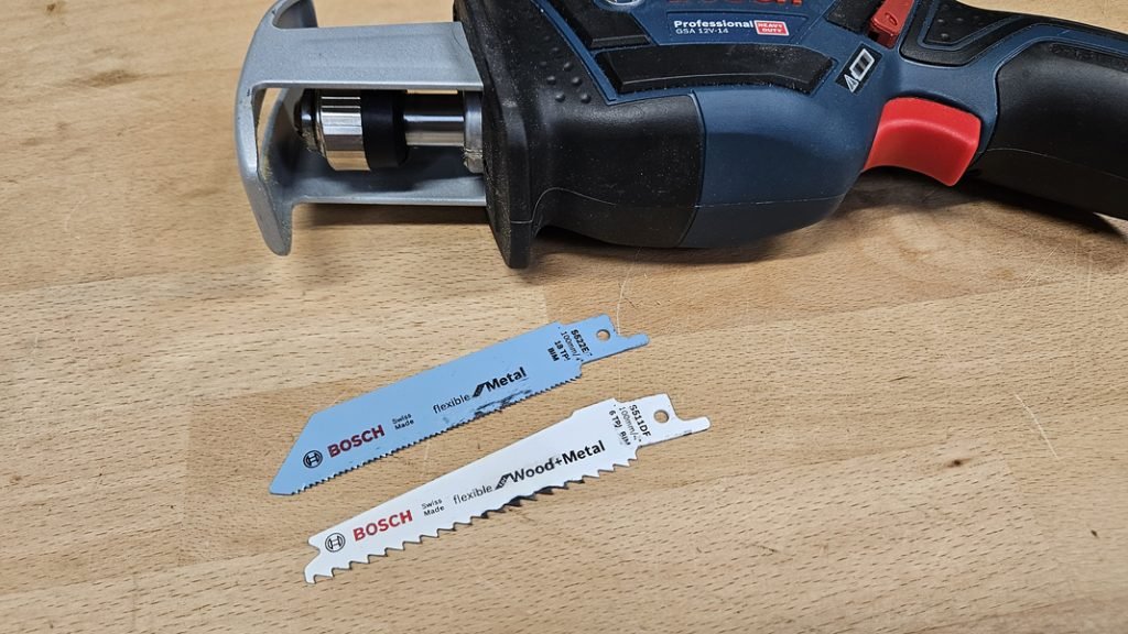 Bosch fournit malgré tout deux types de lames : une pour le bois et une lame bimétal pour le métal et le bois (notamment utile pour découper des palettes contenant des clous).