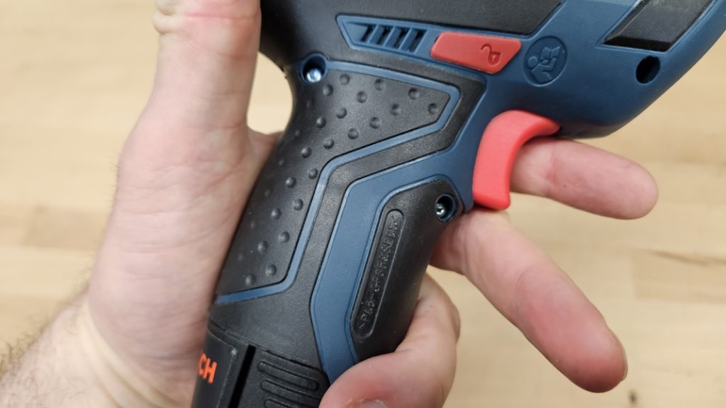 L’un des atouts majeurs de la Bosch GSA 12V-14 est son poids plume de seulement 1,047 kg (sans batterie). Ce poids réduit garantit une prise en main très confortable, même dans les endroits difficiles d’accès. La poignée ergonomique est recouverte d’un grip antidérapant qui améliore considérablement le contrôle et le confort d’utilisation.
