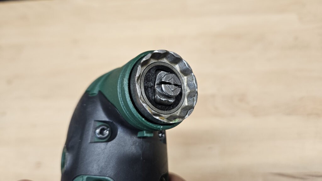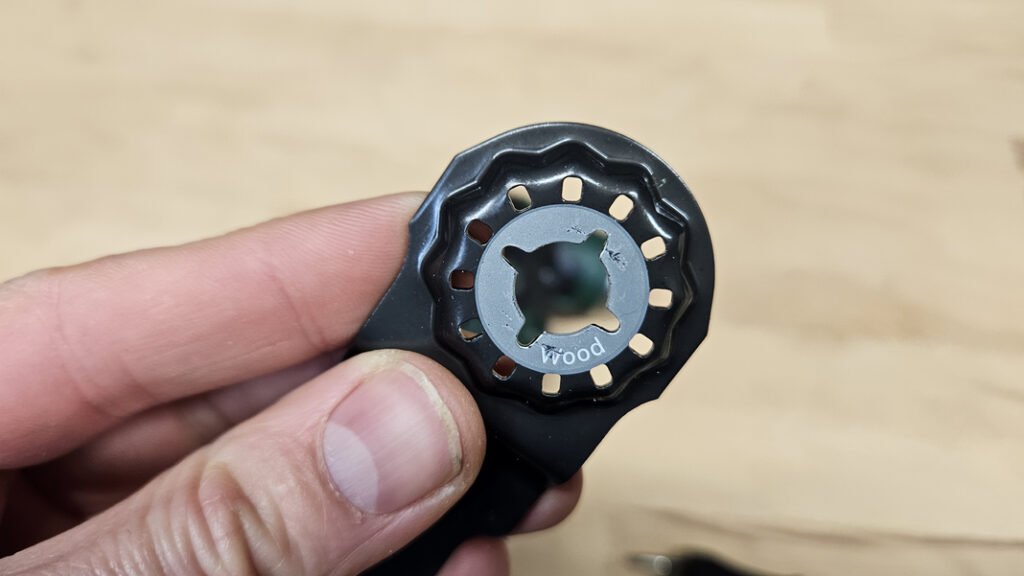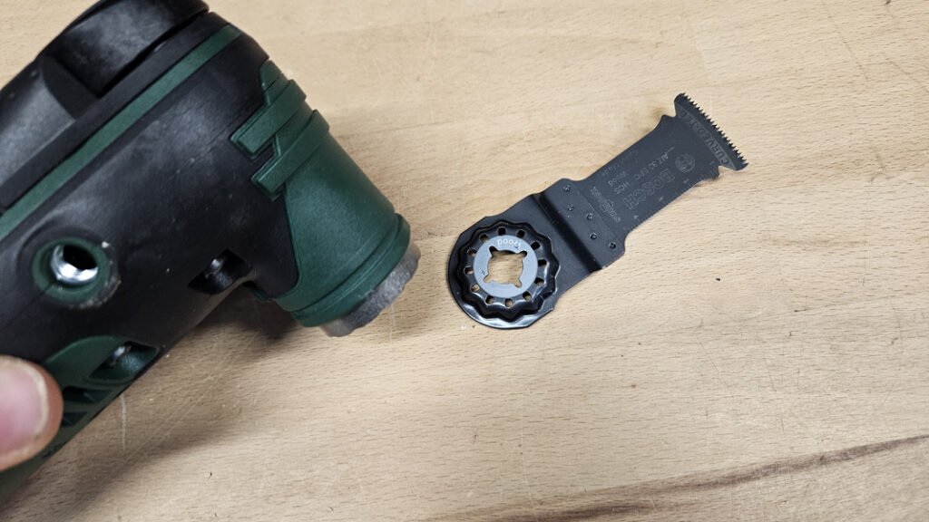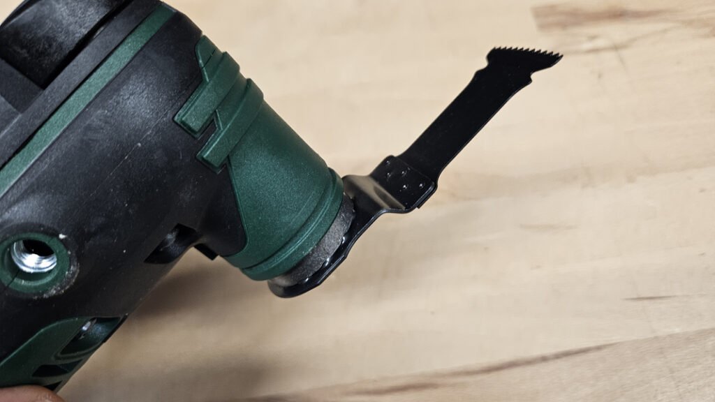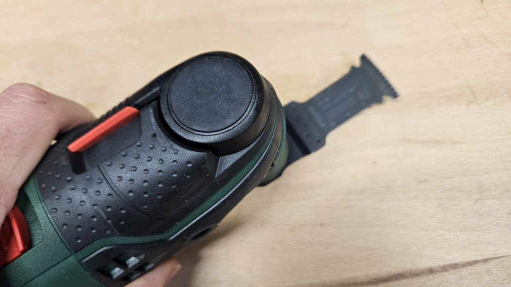 Le variateur de vitesse placé à la base de l’outil permet d’adapter précisément le régime d’oscillation en fonction du matériau et de l’accessoire utilisé. Cette plage de réglage apporte une vraie polyvalence, aussi bien pour les découpes délicates que pour des travaux plus rapides dans le bois ou les panneaux.