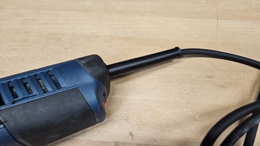 Son câble d’alimentation de 4 mètres offre une bonne liberté de mouvement malgré le fait que ce soit un outil filaire. Bosch a également prévu un renfort pivotant à la base du câble pour limiter l’usure.