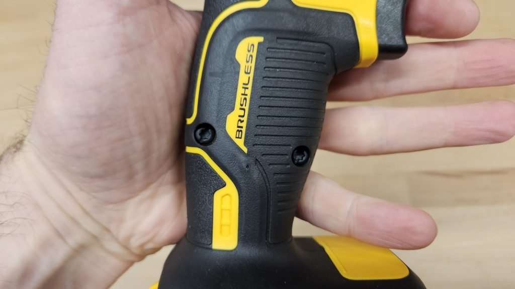 Pesant à peine 1,025 kg sans batterie, cet outil multifonction est léger et bien équilibré. Son grip caoutchouté recouvre une large partie de la poignée pour une excellente adhérence, tandis que la grande gâchette facilite le démarrage progressif et le contrôle de la vitesse. Un bouton de blocage évite les déclenchements involontaires. Des renforts en gomme, présents sur le boîtier protègent de plus l’outil en cas de chute et réduisent les vibrations pendant les travaux.