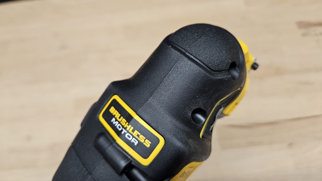 Comme je le mentionnais à l’instant, le DCS355 embarque un moteur Brushless de dernière génération, gage de longévité et d’une meilleure gestion de l’autonomie. Il peut atteindre une vitesse d’oscillation de 20 000 oscillations par minute avec une amplitude de 3,2 °. Ces performances assurent des coupes rapides, nettes et précises dans différents matériaux, qu’il s’agisse de bois, de métal ou de plastiques durs.