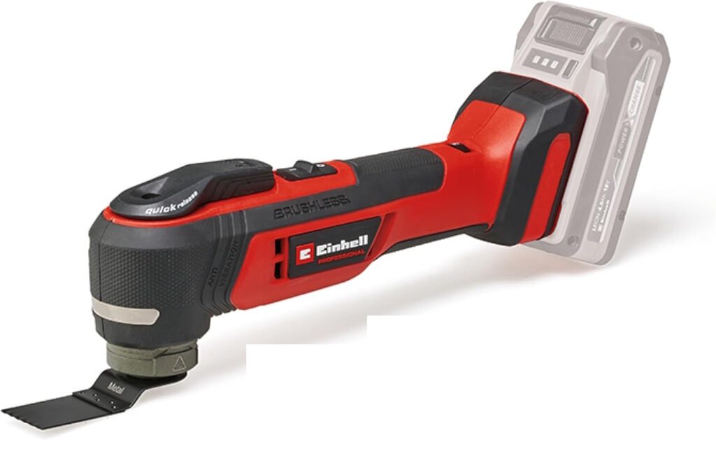 L’outil multifonction est clairement l’un des appareils les plus pratiques quand on bricole régulièrement : il coupe, racle, ponce, ajuste, et il permet surtout de travailler “au plus près” (dans un angle, au ras d’un support, dans une niche, etc.). Avec le Einhell TP-MG 18 Li BL, la marque vise un public qui veut un modèle sans fil plus sérieux que l’entrée de gamme : moteur Brushless, amplitude élevée, anti-vibration et un système de changement d’accessoires sans clé.