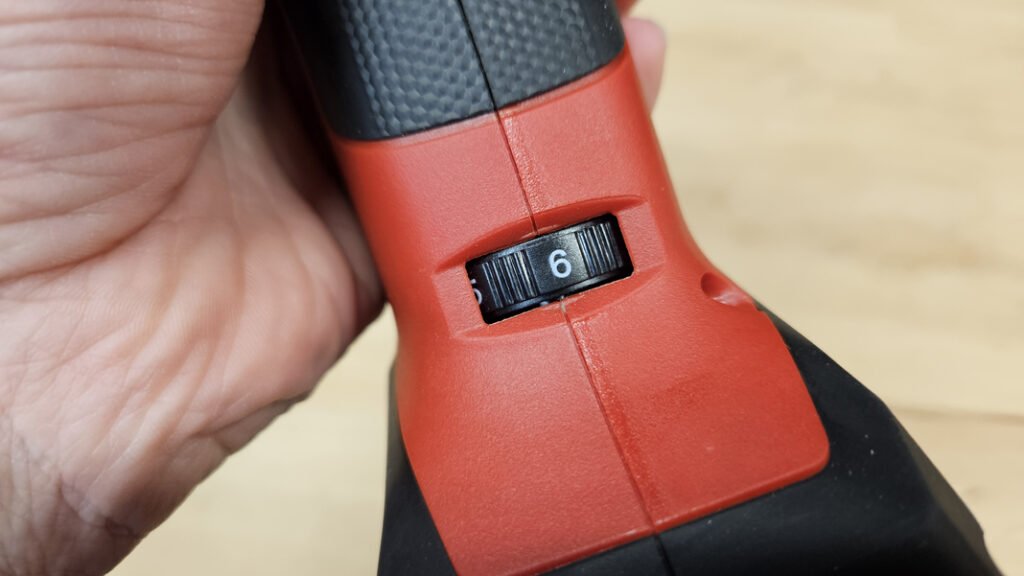 Le variateur 6 positions permet d’ajuster la vitesse d’oscillation entre 11 000 et 20 000 osc/min. En pratique, on ne règle pas “au hasard” : sur le bois, on peut monter assez haut pour gagner du temps (avec une lame adaptée), tandis que sur le métal (clou, vis, petite cornière), descendre la vitesse aide à garder le contrôle, limiter la chauffe et préserver un peu la lame.