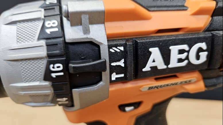 La perceuse propose 20 positions de réglages afin d’adapter le couple selon le matériau et la taille de vis. On accède ensuite au mode perçage (couple maximal) et enfin au mode percussion. Le changement de vitesse se fait par un interrupteur sur le dessus, entre les deux vitesses mécaniques disponibles.