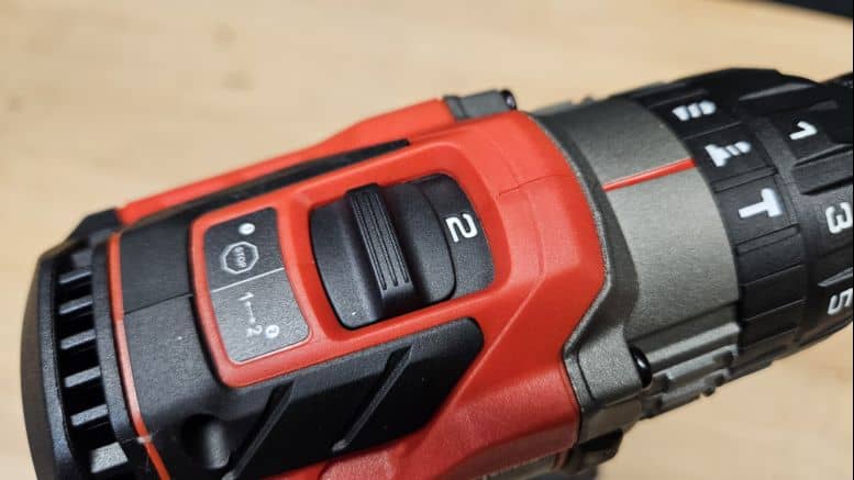 Côté poids, elle affiche 1,54 kg sans batterie, ce n’est donc pas la plus légère des perceuses visseuses, mais cela est justifié notamment par ses performances. Malgré cela, je l’ai trouvée confortable à utiliser. La poignée est ergonomique, avec un grip agréable et un équilibre correct, surtout avec une batterie de 2 Ah, les commandes tombent de plus assez naturellement sous les doigts. Même durant des perçages prolongés, la machine reste stable.