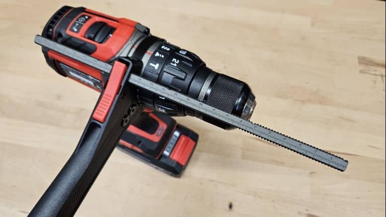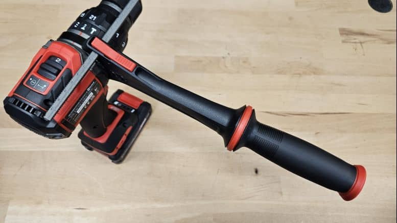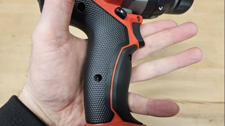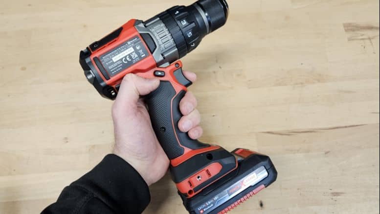 Côté poids, elle affiche 1,54 kg sans batterie, ce n’est donc pas la plus légère des perceuses visseuses, mais cela est justifié notamment par ses performances. Malgré cela, je l’ai trouvée confortable à utiliser. La poignée est ergonomique, avec un grip agréable et un équilibre correct, surtout avec une batterie de 2 Ah, les commandes tombent de plus assez naturellement sous les doigts. Même durant des perçages prolongés, la machine reste stable.