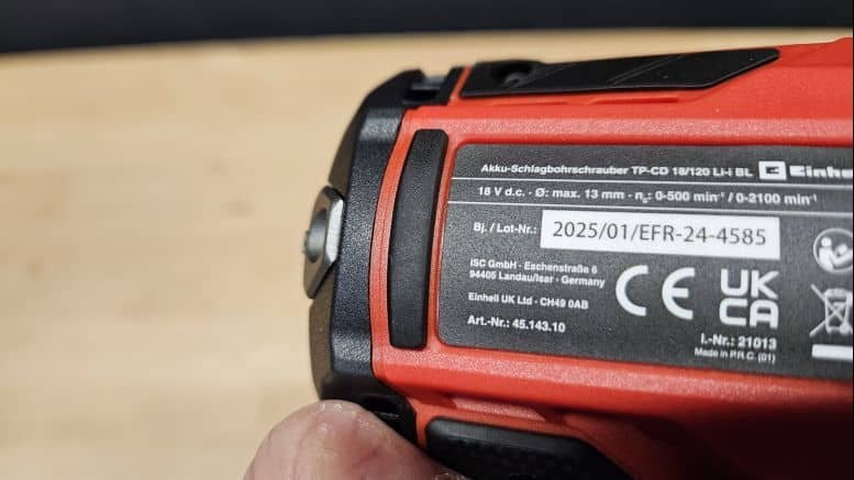 Voici les principales spécifications techniques que j’ai relevées pour cette perceuse à percussion Einhell TP-CD 18/120 Li-i BL :