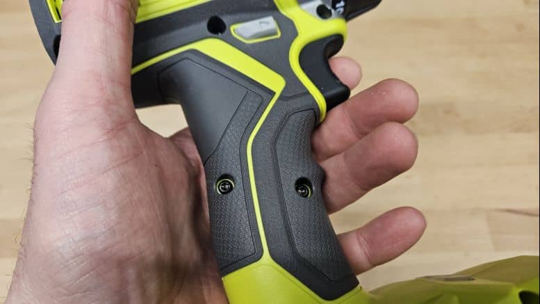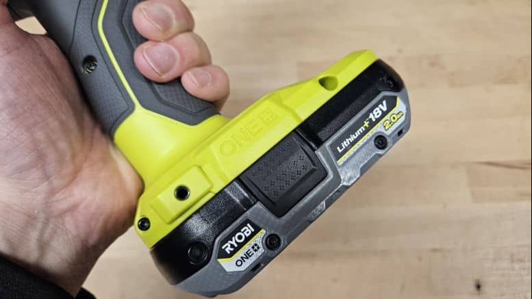 Avec un poids de 1,23 kg sans batterie, la Ryobi RPD18 reste maniable. J’ai trouvé qu’elle était un peu plus lourde que les modèles haut de gamme dotés de moteur Brushless, mais l’équilibre est tout à fait correct, notamment avec une batterie de 4 Ah. La poignée est confortable, bien rembourrée avec un grip épais, ce qui limite la fatigue même après plusieurs minutes d’utilisation. Les commandes sont bien placées et intuitives.
