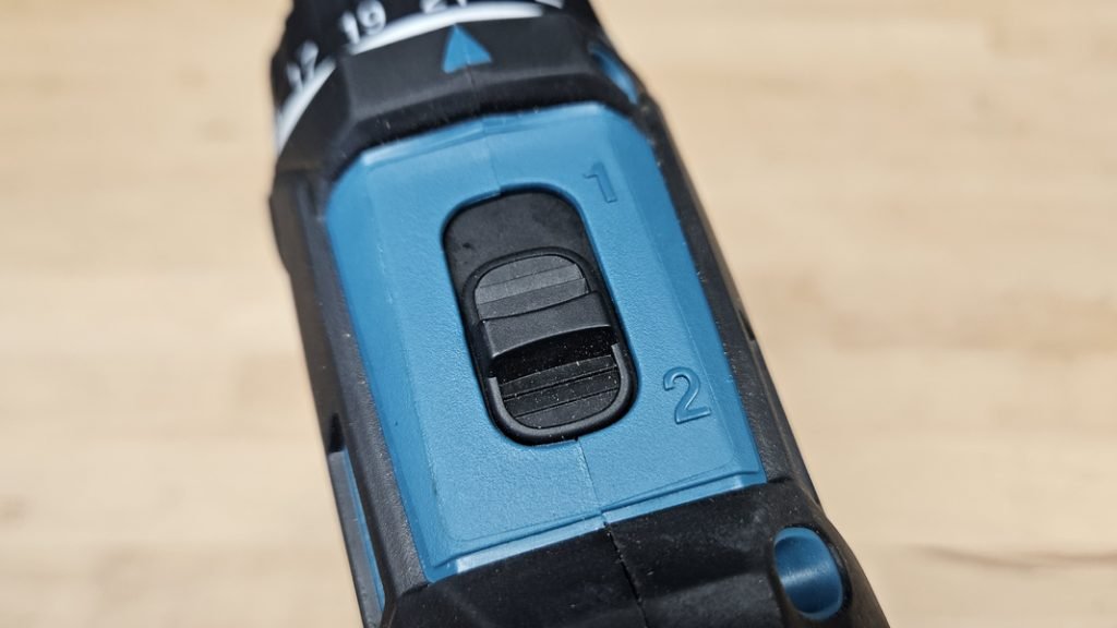 Avec un poids d’environ 1,18 kg (sans batterie), cette perceuse-visseuse est bien équilibrée. La poignée est recouverte de grip confortable, assurant une bonne prise en main. L’ergonomie générale est soignée, la gâchette répond bien, les boutons tombent naturellement sous les doigts, et la coque renforcée avec des pare-chocs en gomme qui protègent la machine en cas de chute.