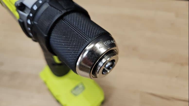 Le mandrin est autoserrant, avec une capacité de 1,5 à 13 mm. Il est composé de plastique renforcé par une bague en métal à l’avant, ce qui améliore sa solidité sans alourdir la machine.