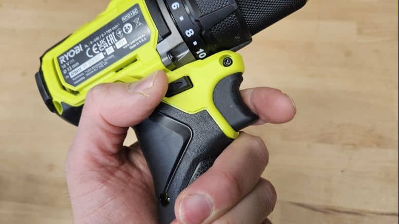 Avec seulement 958 g (sans batterie), la RDD18C est l’une des perceuses les plus légères de sa catégorie. Elle est bien équilibrée, agréable à tenir, avec une poignée dotée d’un grip confortable. Tous les boutons (gâchette, inversion de sens) tombent naturellement sous les doigts. Même avec une batterie 2 Ah, l’ensemble reste maniable.