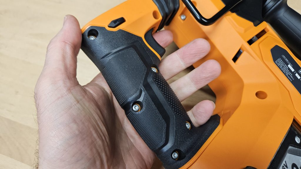 La poignée principale ergonomique équipée d’un grip confortable et la poignée secondaire pratique garantissent une excellente prise en main et réduisent efficacement la fatigue.