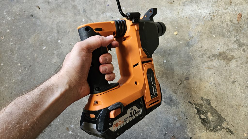 Lors d’un test concret sur un parpaing avec un foret de 10 mm, le perforateur AEG BBH18BL2 démontre une efficacité remarquable. Son mode percussion associé à sa puissance facilite le perçage sans effort excessif.