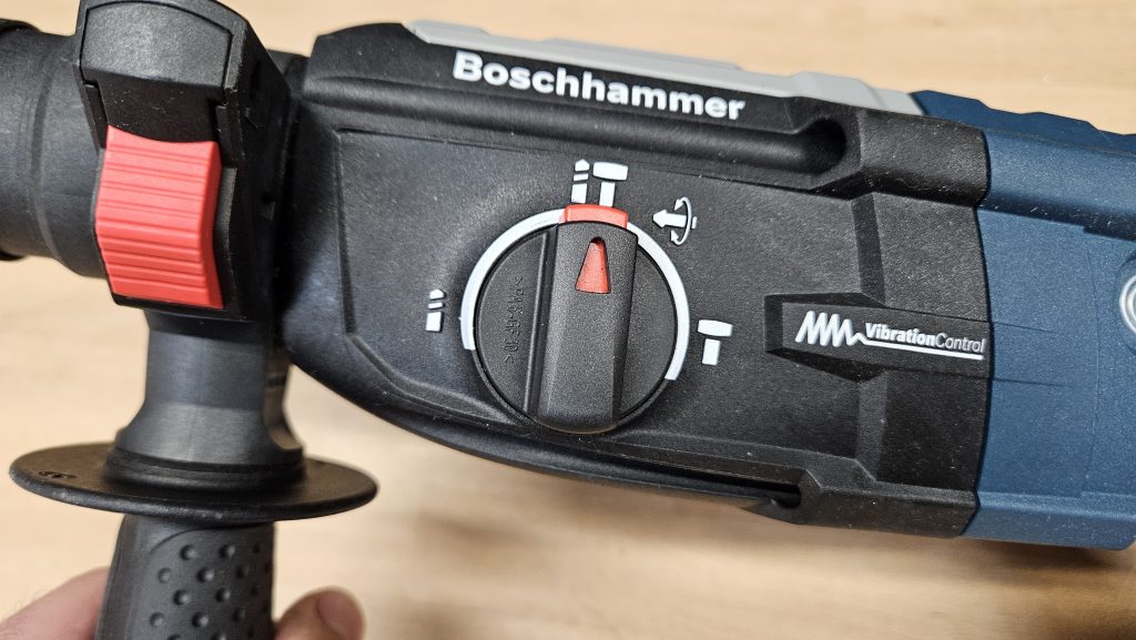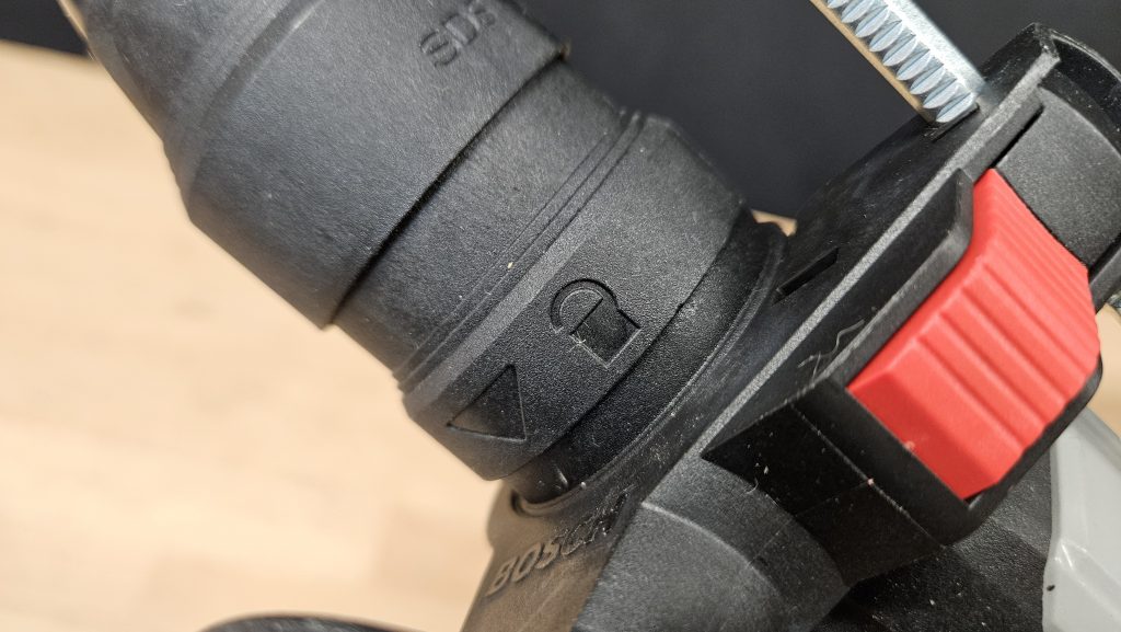 Un aspect particulièrement intéressant de ce perforateur est son mandrin interchangeable. En effet, le Bosch GBH 2-28 F dispose d’un mandrin SDS+ classique, mais il peut être remplacé rapidement par un mandrin autoserrant grâce à un système de fixation rapide. Cette fonctionnalité permet d’utiliser facilement différents types de forets, augmentant ainsi considérablement la polyvalence de l’outil.