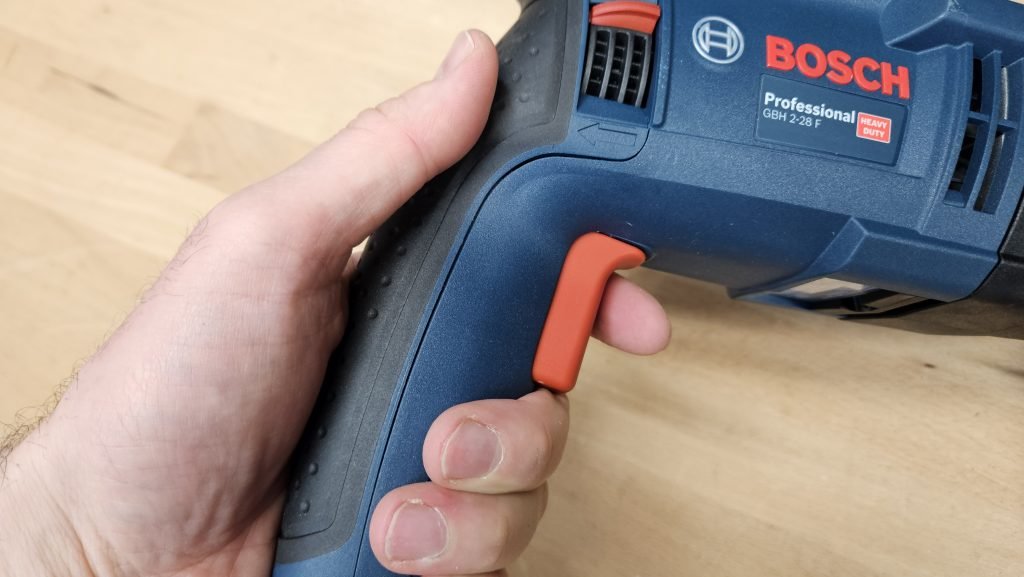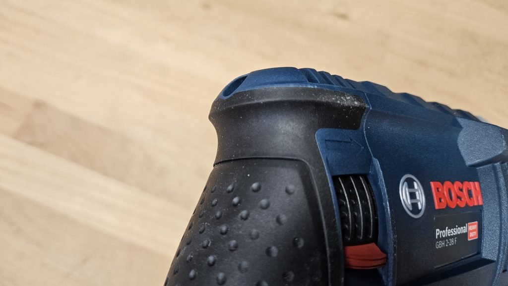 Un aspect particulièrement intéressant de ce perforateur est son mandrin interchangeable. En effet, le Bosch GBH 2-28 F dispose d’un mandrin SDS+ classique, mais il peut être remplacé rapidement par un mandrin autoserrant grâce à un système de fixation rapide. Cette fonctionnalité permet d’utiliser facilement différents types de forets, augmentant ainsi considérablement la polyvalence de l’outil.