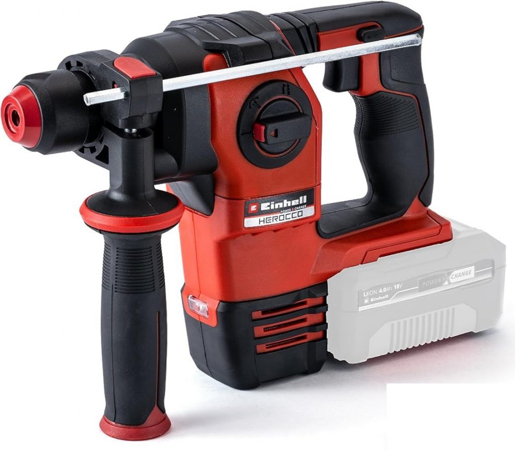 Le pack de base comprend le perforateur Einhell Herocco, la poignée secondaire ergonomique et la butée de profondeur. À noter que les batteries et le chargeur sont vendus séparément, ce qui permet aux utilisateurs possédant déjà des équipements de la gamme Power X-Change de ne pas investir inutilement.