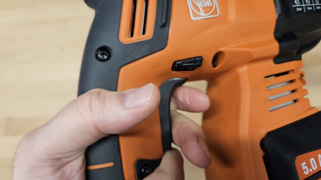 Un détail intéressant est la conception spécifique du boîtier et de la gâchette permettant une prise en main différente, utilisant deux doigts pour plus de stabilité et de contrôle, particulièrement appréciée lors des perçages de précision ou des travaux prolongés.