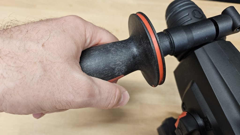 Avec un poids de 2,47 kg sans batterie, le Metabo KHA 18 LTX se situe dans la moyenne haute en termes de poids. Ce poids conséquent peut engendrer une certaine fatigue lors d’une utilisation prolongée à bout de bras. Heureusement, l’outil est équipé d’une poignée secondaire ergonomique permettant une prise en main stable et confortable, réduisant ainsi significativement la fatigue.