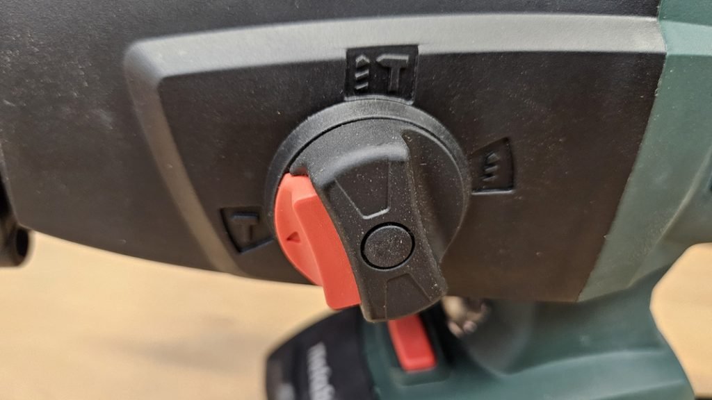 Le Metabo KHA 18 LTX propose trois modes principaux : perçage simple, perçage avec percussion, et burinage sans rotation. Une fonctionnalité supplémentaire permet une légère rotation du mandrin pour orienter précisément le burin. Cette polyvalence rend le perforateur très utile pour divers travaux, allant de la fixation simple au retrait de matériaux tels que le carrelage ou la réalisation de petits travaux de démolition.