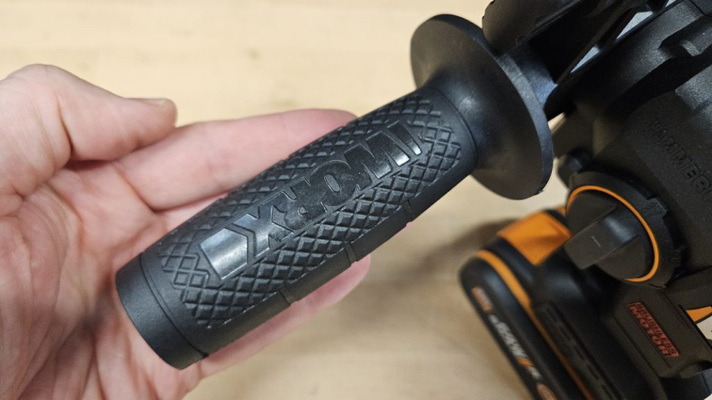 Le Worx WX381.9 est livré en configuration basique incluant le perforateur lui-même ainsi que la poignée secondaire ergonomique. Il est important de noter que la batterie et le chargeur ne sont pas inclus dans cette configuration de base, ce qui permet aux utilisateurs possédant déjà d’autres outils de la gamme de réutiliser leurs batteries PowerShare.