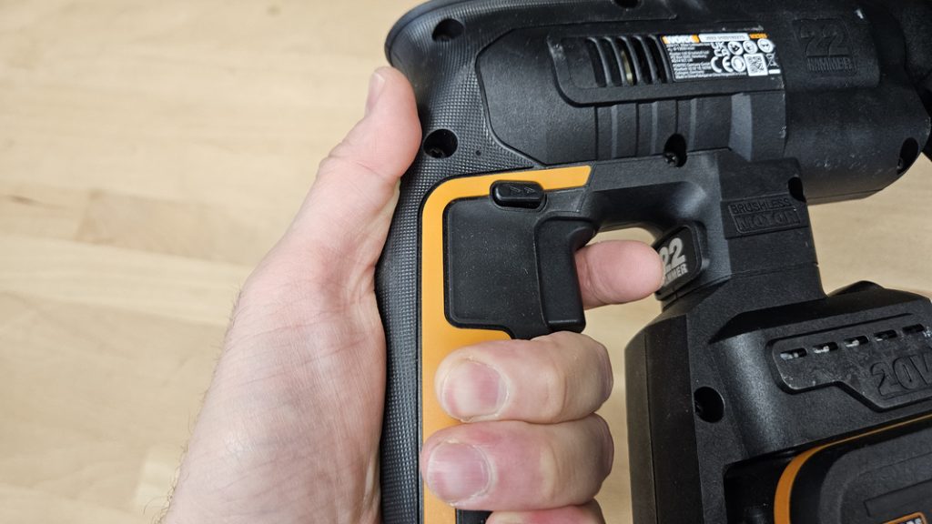 Le moteur Brushless du Worx WX381.9 garantit non seulement une durée de vie plus longue, mais aussi une meilleure efficacité énergétique. Ce modèle propose une vitesse de rotation maximale de 1350 tours par minute, légèrement inférieure à certains concurrents, mais suffisante pour les travaux standards. En revanche, sa cadence de frappe atteint 4700 coups par minute avec une puissance de frappe de 2 joules, ce qui est tout à fait convenable pour des travaux courants dans des matériaux tels que le béton, avec une capacité maximale de perçage jusqu’à 22 mm.