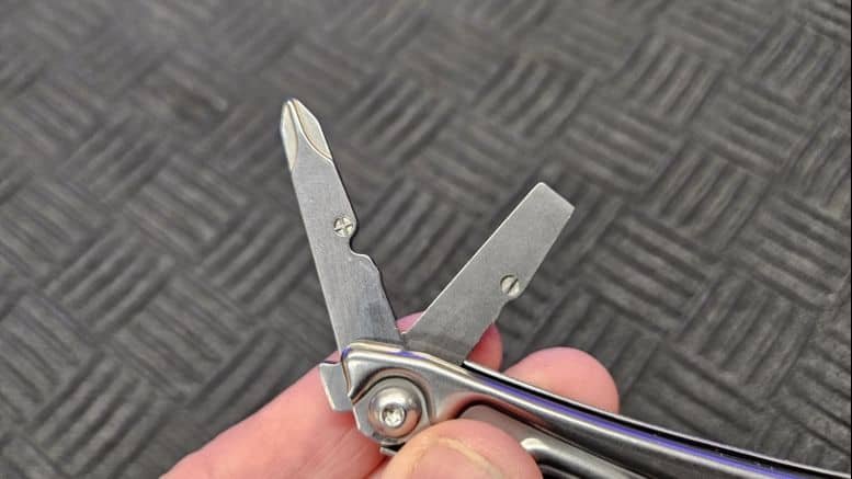 Seule la lame est équipée d’un système de blocage. Les autres outils sont maintenus en position ouverte de façon simple, ce qui reste acceptable à ce niveau de prix.