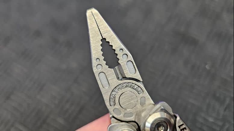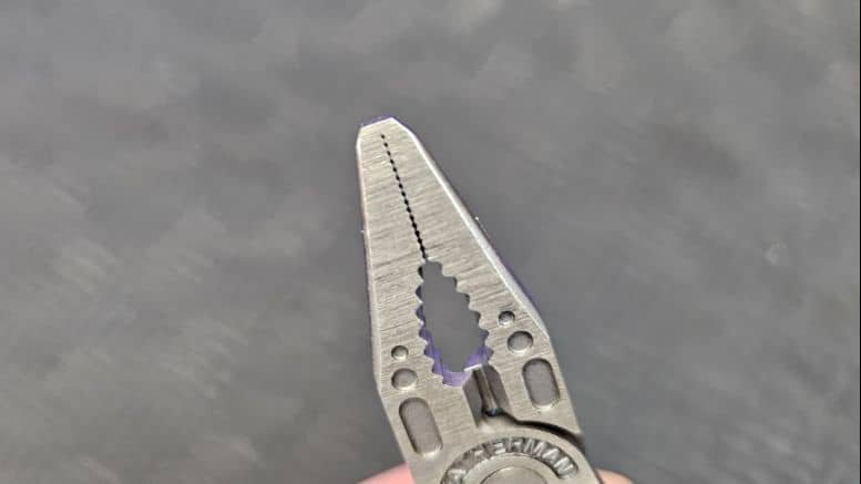 La pince du Skeletool, bien que dépourvue de ressort, reste très maniable. Elle comprend :