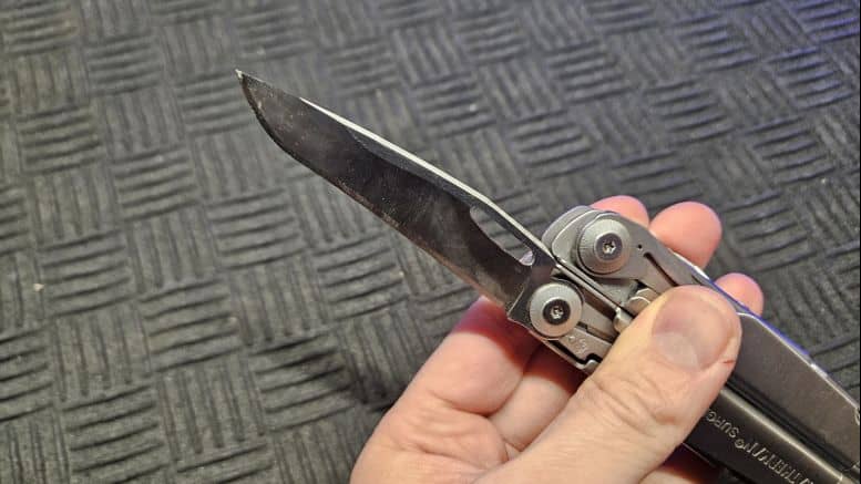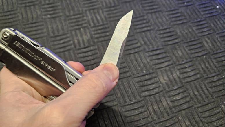 La prise en main est ferme et rassurante grâce à un châssis imposant, mais bien conçu. Le poids élevé se fait sentir, mais il participe à l’impression de robustesse. Les poignées offrent une bonne ergonomie, même avec des gants. C’est un outil que l’on préférera porter à la ceinture ou garder dans un sac à outils. En main, le Surge inspire confiance et se montre très efficace en usage intensif. Les outils extérieurs sont facilement accessibles, et le système de verrouillage renforce la sécurité.