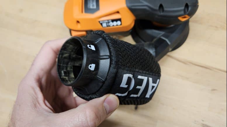 Comme sur beaucoup de ponceuses de cette catégorie, la AEG BEX18SBL est équipée d’un plateau de 125 mm de diamètre, comportant des perforations, là aussi classiques, permettant de faciliter l’aspiration des poussières.