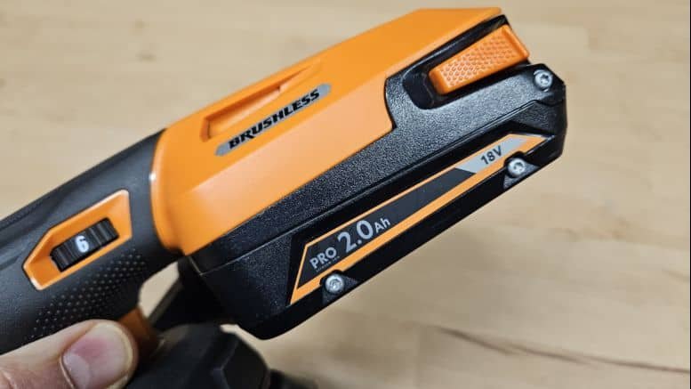 Cette machine est bien entendu compatible avec l’ensemble des batteries 18V PRO Lithium Ion, vous pourrez donc réutiliser les batteries de la même gamme que vous possédez déjà.