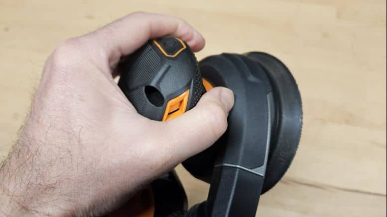Lors de mes tests (avec disque grain 80), le ponçage était efficace dès la position 3. En position 6, la machine démontre toute sa puissance tout en maintenant un bon contrôle. Le régulateur de vitesse permet d’adapter la cadence au type de matériau ou à la finesse du travail souhaité.