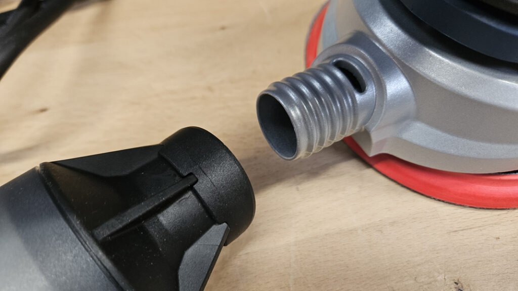 Le plateau de 150 mm augmente naturellement la productivité sur de grandes surfaces, à condition d’utiliser des disques abrasifs adaptés à ce diamètre, facilement disponibles. Le plateau est perforé, ce qui favorise l’aspiration au plus près de la zone poncée. Pour maximiser ce point, l’usage de disques abrasifs à maille est pertinent, puisqu’ils laissent mieux circuler l’air et améliorent l’évacuation des poussières, ce qui contribue à garder un abrasif plus “ouvert” et à maintenir un ponçage plus régulier.