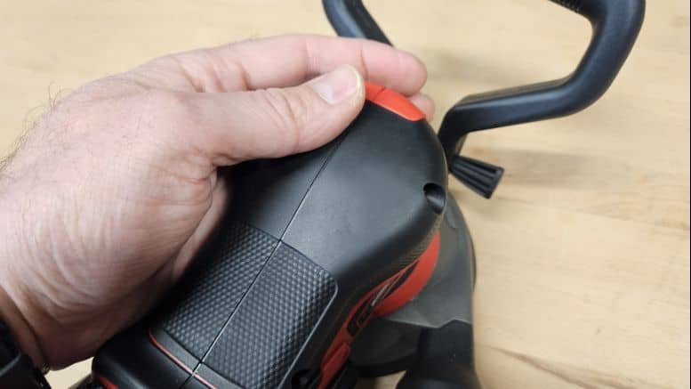 Les boutons sont bien positionnés, avec un interrupteur protégé contre les poussières et une molette de réglage de vitesse facilement accessible. L’arrêt rapide du moteur est aussi un point fort qui augmente la sécurité et la fluidité d’utilisation.