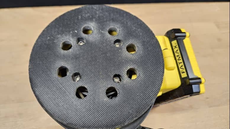 Le plateau de la FMCW220 mesure 125 mm de diamètre. Il est équipé de perforations pour l’aspiration et compatible avec les disques abrasifs à fixation auto-agrippante. Ce format standard permet de trouver facilement des disques en magasin de bricolage ou en ligne, et à prix raisonnable.