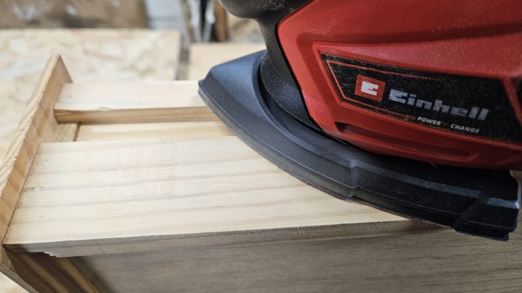 Dans ma vidéo, je vous présent cette machine sous tous les angles, y compris en démonstration sur le ponçage d’un élément de meuble en pin. Elle a montré une bonne efficacité dans les coins et le long des bords, même si la puissance reste limitée pour les grandes surfaces planes. Le bac de récupération fonctionne, mais l’usage d’un aspirateur externe améliore considérablement le résultat.